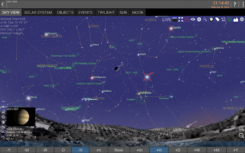 - Zoomable sky map showing stars, planets, asteroids, and more (above and below the horizon)